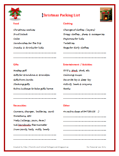 Christmas Packing List Free Printable From Overwhelmed To Organized Christmas Packing List Free Printable