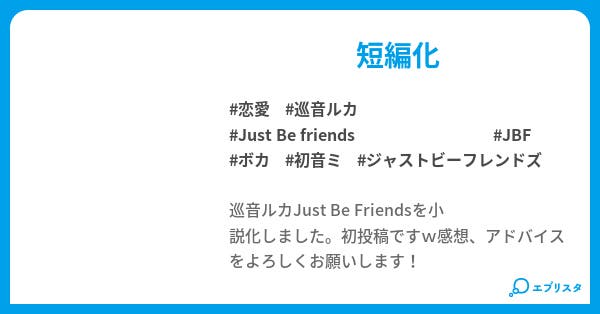Just be friends 小説. Just friends, But not like before. 1 / 1 ページ;. PVJust Be Friends.小説版 VOCALOID 一度だけ、一度だけ願いが叶うならあの日に戻って、あの日の君に会いに行くよ―――。ニコニコ動画で累.